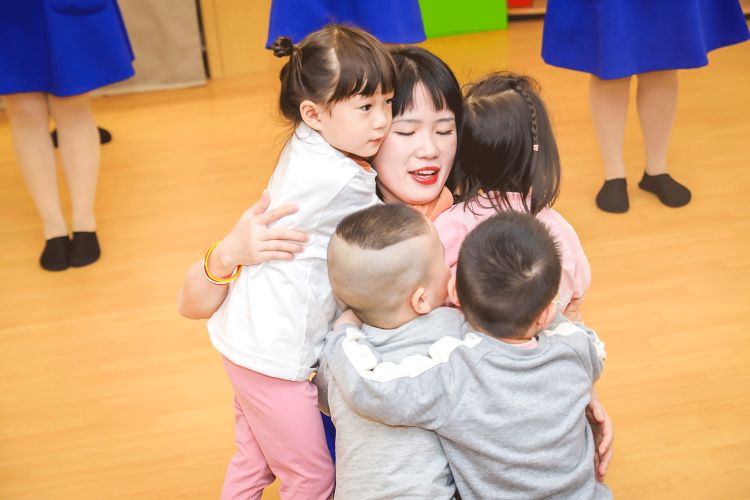 (孩子们用拥抱表达对老师的依恋)